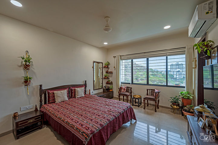 We decided to use colours as a main element in the house that responds to individual personalities of the family members.The blue public spaces are young, vibrant and full of energy yet are subtle and elegant.The green along with wood in work area provides calm and formal feel to the space.Red in Master bedroom makes it warm and cosy.Purple along with pink in daughters bed room makes it cheerful and fresh.